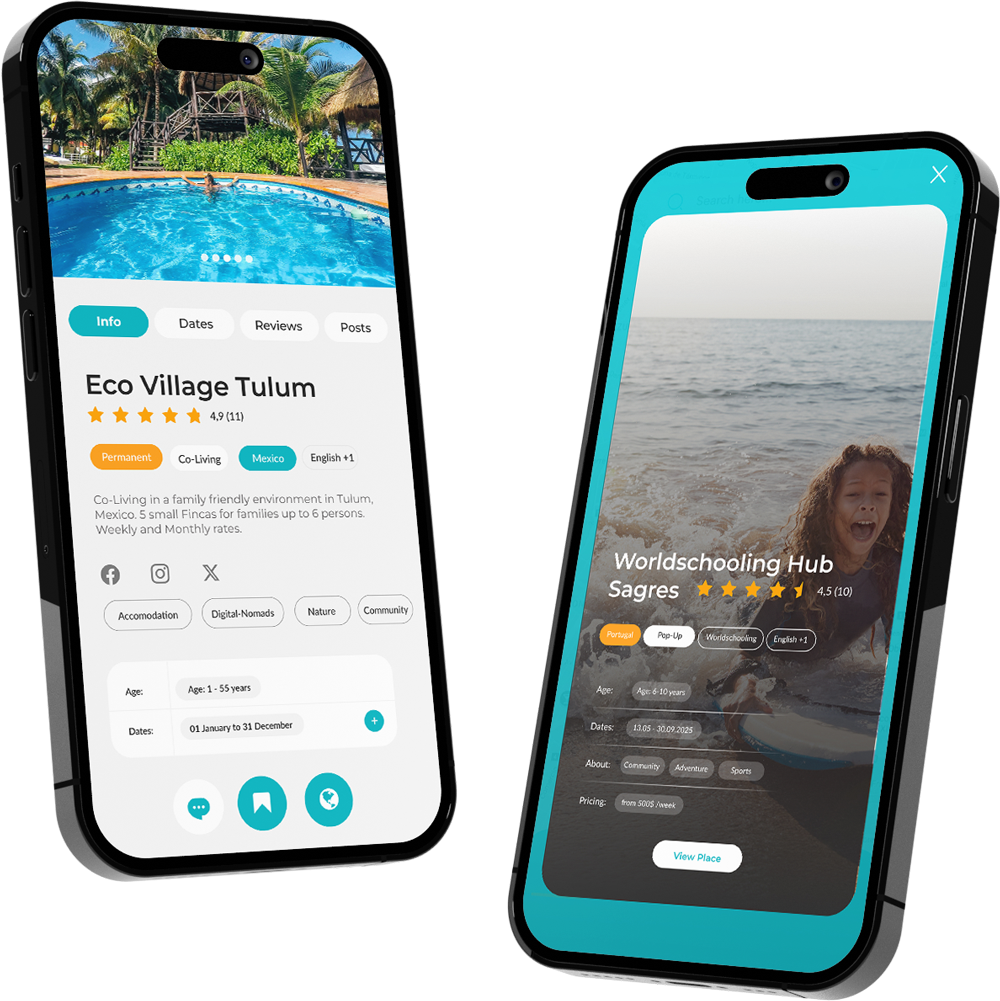 • Category Filters: Be found through relevant filters (worldschooling hub, forest camp, coliving space, etc.).